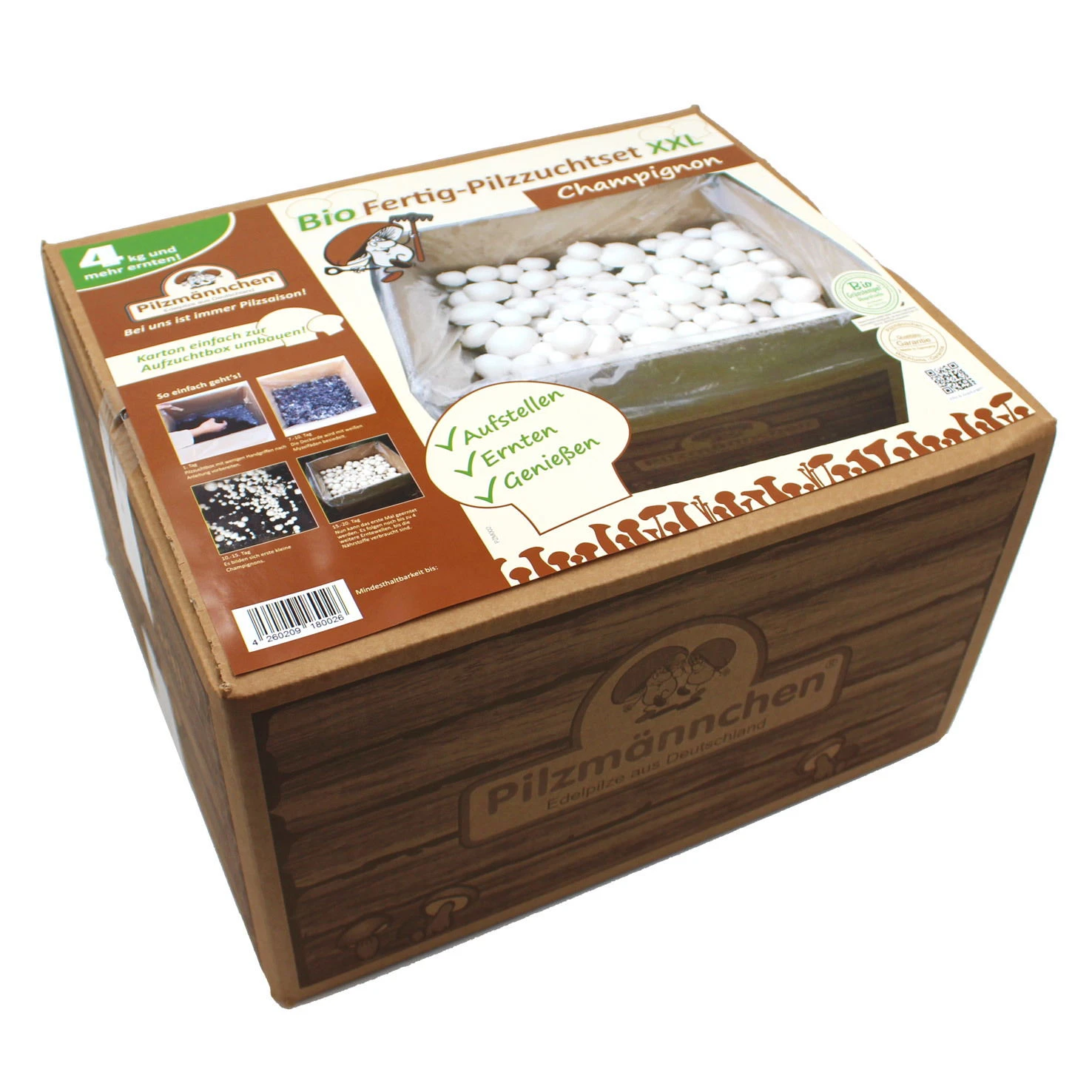 Champignons züchten ist gar nicht so schwer. Mit dem Pilzzuchtset können Sie schon bald selbstgezüchtete Champignons ernten und genießen. Dieses umfangreiche Bio Fertig-Pilzzuchtset für Champignons kommt mit einer detaillierten, gut verständlichen und bebilderten Champignon-Pilzzuchtanleitung zu Ihnen nach Hause. Im Nu entsteht so eine Pilzzuchtbox für hochwertige Bio-Champignons. Sie können das Wachstum beobachten und schon nach 2 bis 3 Wochen erste eigene Bio-Champignons ernten und genießen.