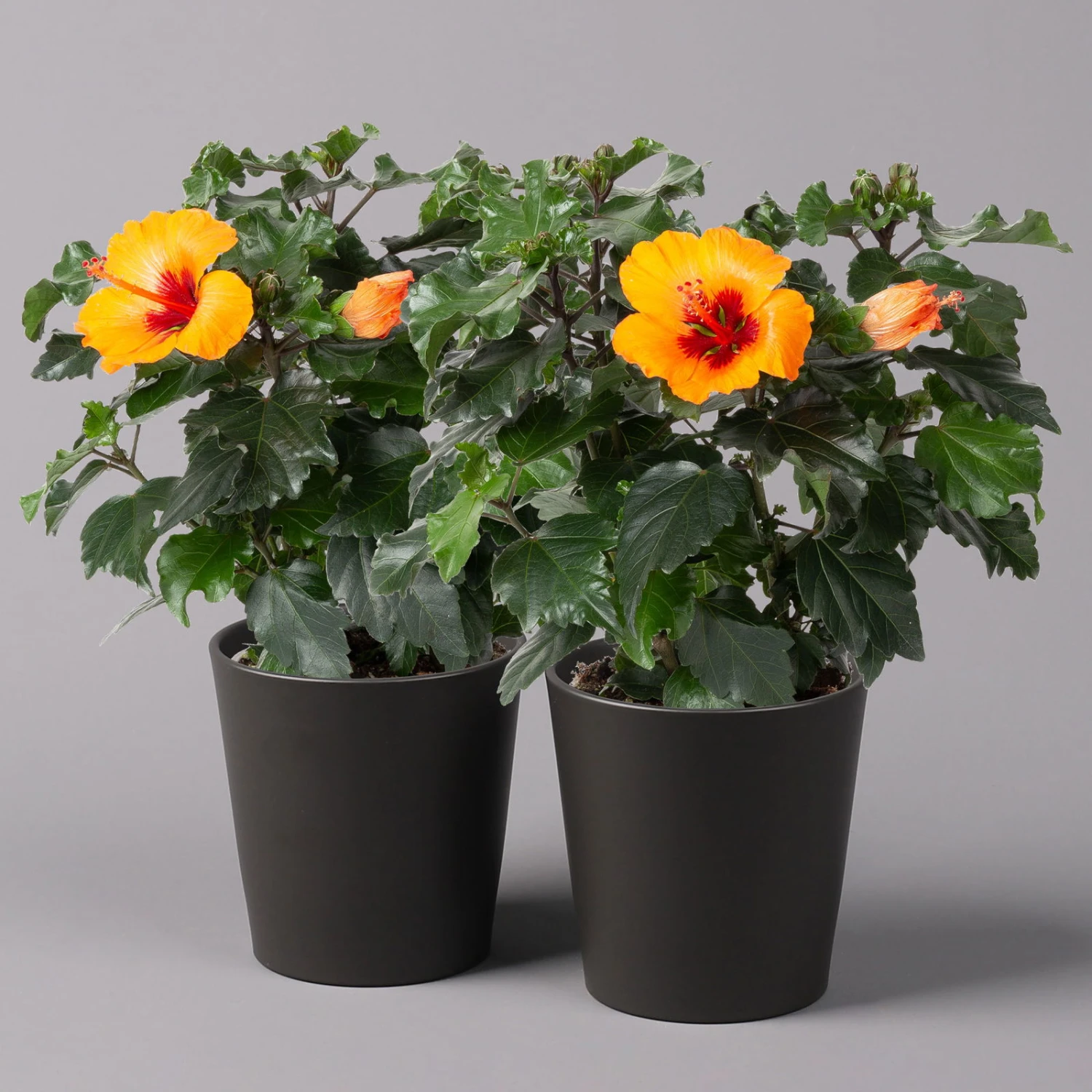 Hibiskus, Graff® ‚Petit Orange‘, In Keramiktopf Anthrazit, Topf-Ø 13 Cm, 2er-Set