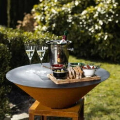 Damit Ihre Feuerstelle ‚Fyro‘ von Feu du Jardin sauber und trocken bleibt, nutzen Sie diesen praktischen Metalldeckel. Mit dem Deckel verwandelt sich Ihre Feuerstelle in einen stilvollen Tisch. Beachten Sie, dass der Deckel als Schutz und Dekoration, jedoch nicht zum Löschen des Feuers gedacht ist.
