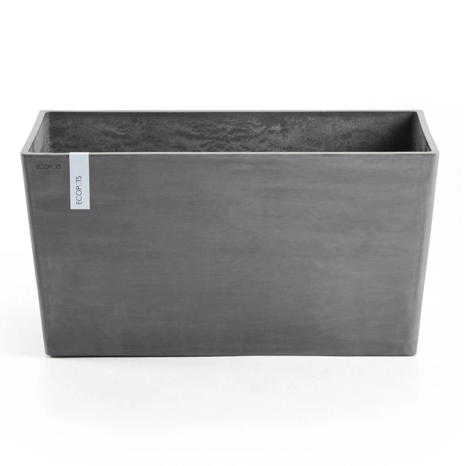 Als Raumteiler oder Abgrenzung macht der graue Pflanzentrog ‚Paris‘ von Ecopots im Innen- und Außenbereich eine gleichermaßen gute Figur. Dieser elegant designte Pflanzkasten in Betonoptik besteht aus recyceltem Stein- und Kunststoffpulver, wobei das Material frost- und bruchfest sowie UV-resistent ist.
