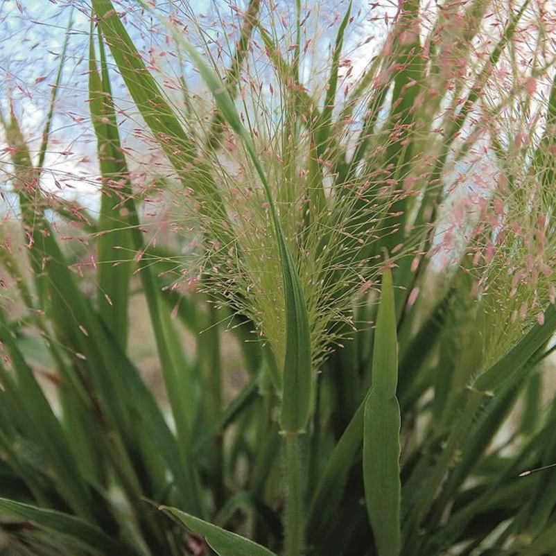 Die locker stehenden, namensgebenden purpurrosa gefärbten Blütenrispen des Purpur-Liebesgrases legen sich zwischen August und September als filigraner Schleier über das Laub.